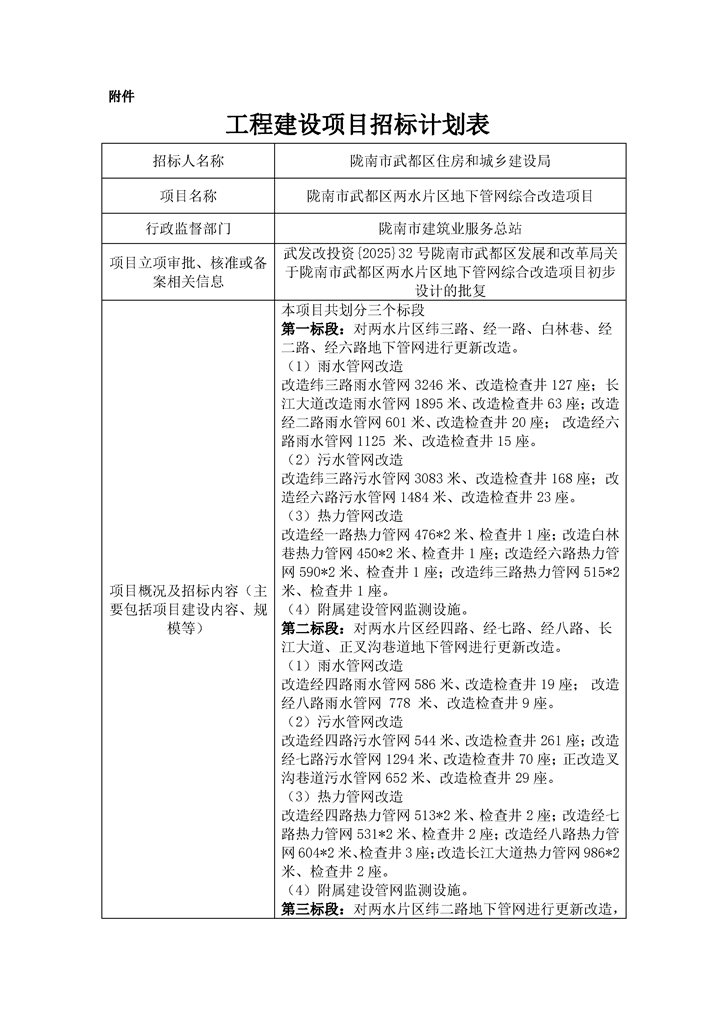 隴南市武都區(qū)兩水片區(qū)地下管網(wǎng)綜合改造項(xiàng)目