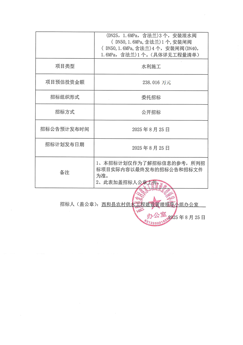 西和縣生豬養(yǎng)殖集群西團(tuán)水廠供水管網(wǎng)延伸工程、 西和縣2025年農(nóng)村應(yīng)急供水及農(nóng)田水利灌溉配套項(xiàng)目及西和縣長道鎮(zhèn)大柳新農(nóng)村等3處農(nóng)村供水維修工程