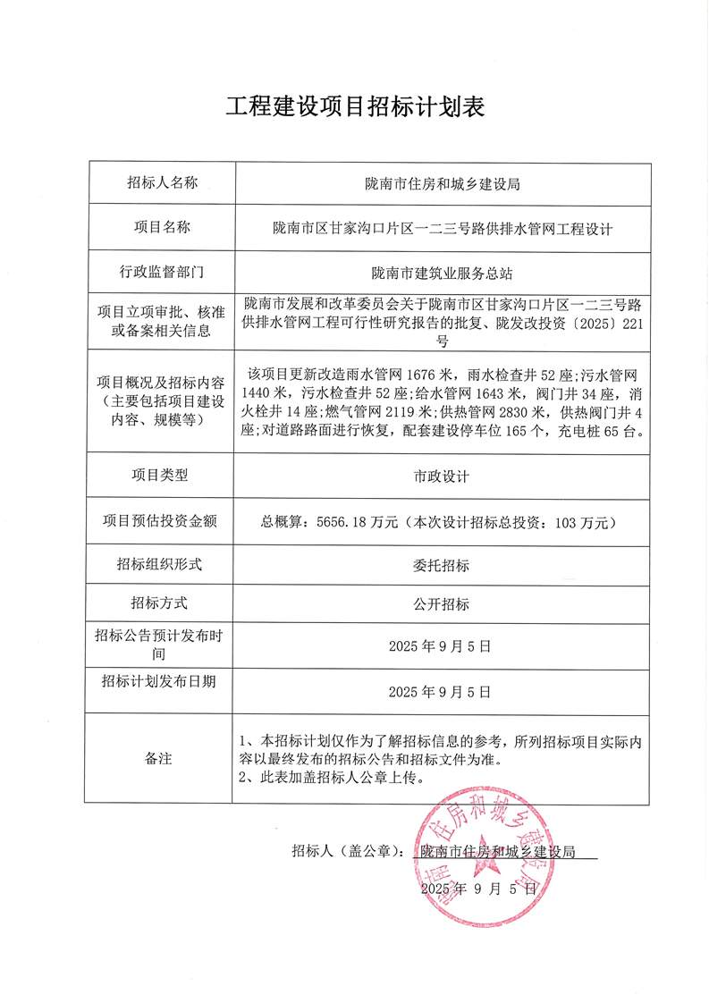 隴南市區(qū)甘家溝口片區(qū)一二三號路供排水管網(wǎng)工程設(shè)計(jì)