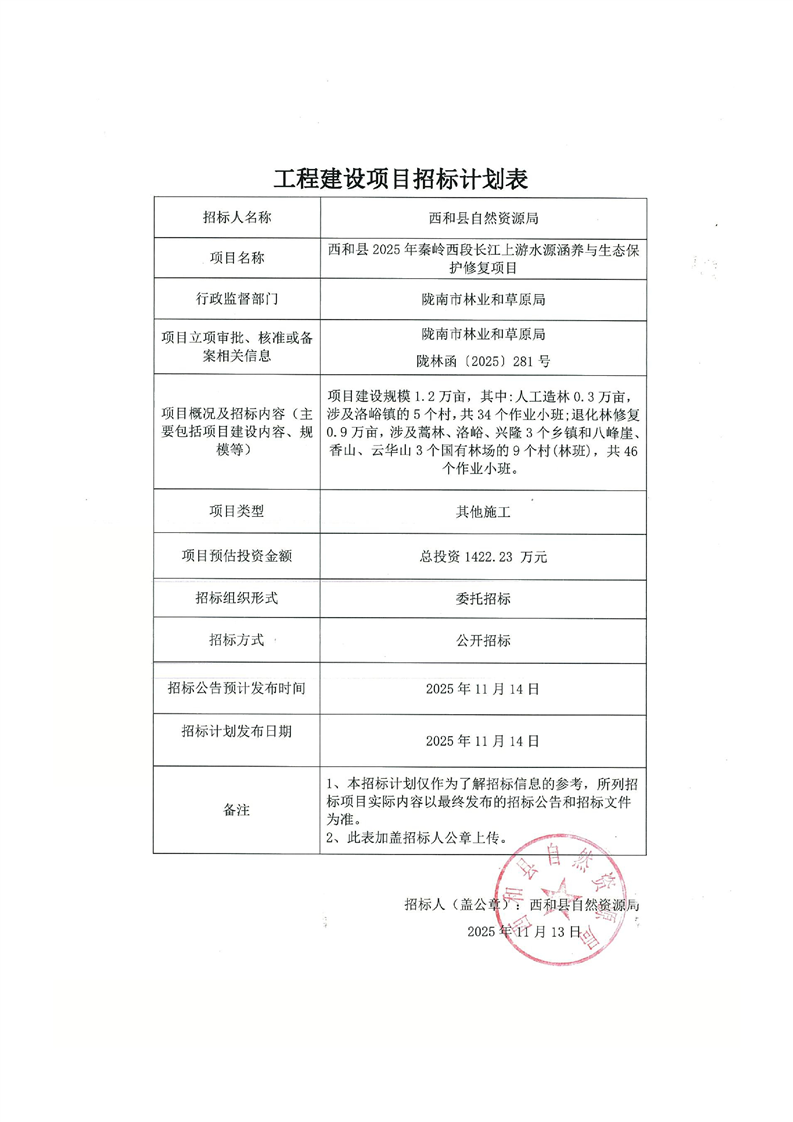 西和縣2025年秦嶺西段長(zhǎng)江上游水源涵養(yǎng)與生態(tài)保護(hù)修復(fù)項(xiàng)目