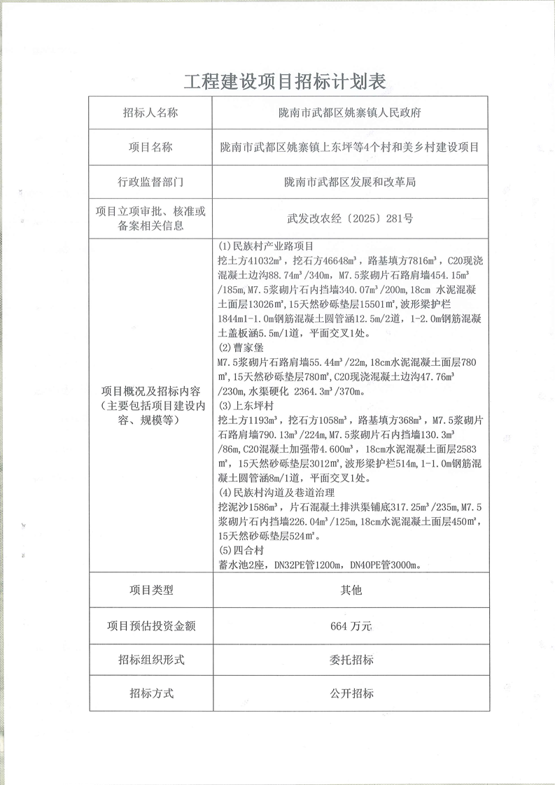 隴南市武都區(qū)姚寨鎮(zhèn)上東坪等4個村和美鄉(xiāng)村建設(shè)項目