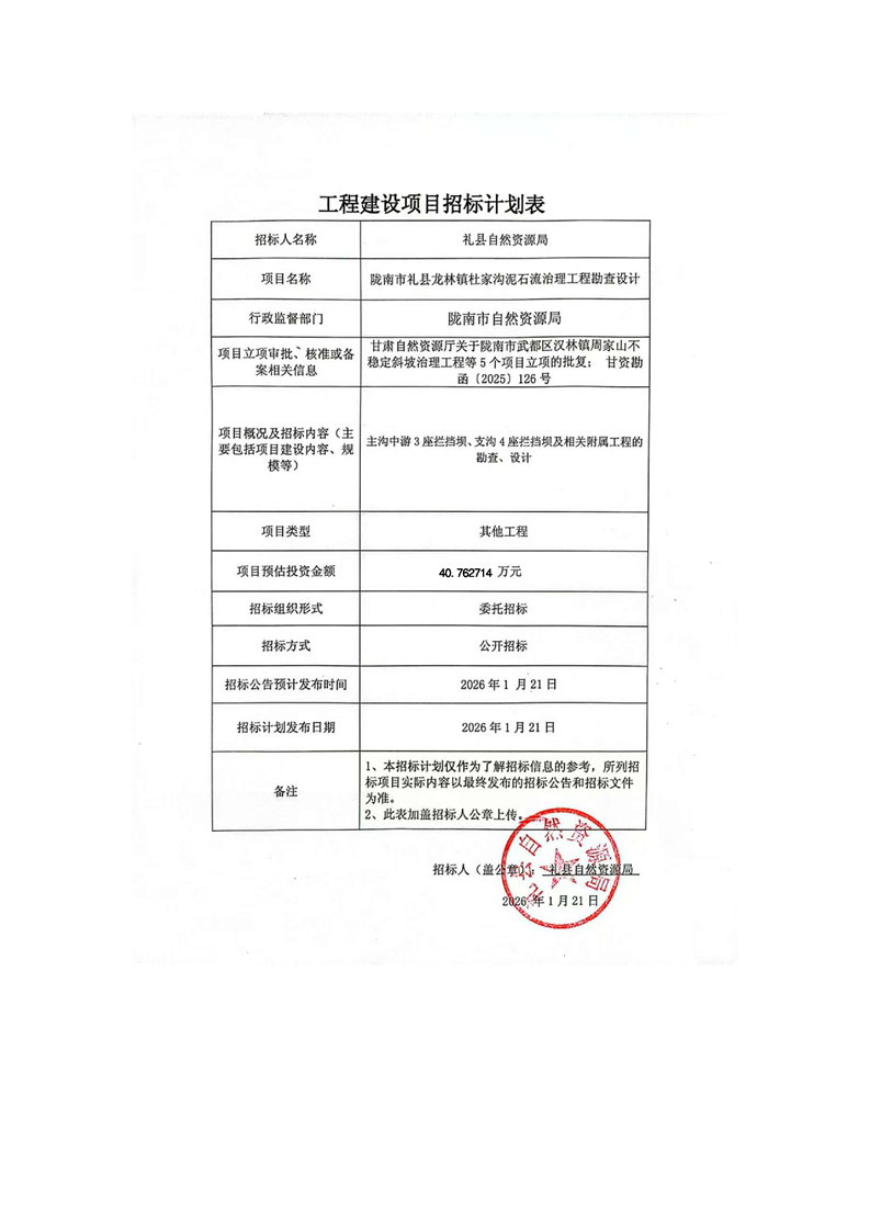 隴南市禮縣龍林鎮(zhèn)杜家溝泥石流治理工程勘查設(shè)計(jì)