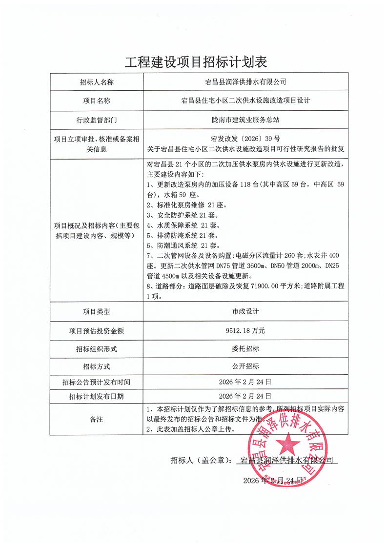 宕昌縣住宅小區(qū)二次供水設(shè)施改造項目設(shè)計