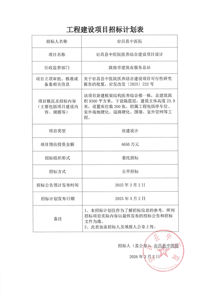 宕昌縣中醫(yī)院醫(yī)養(yǎng)結(jié)合建設(shè)項(xiàng)目設(shè)計(jì)