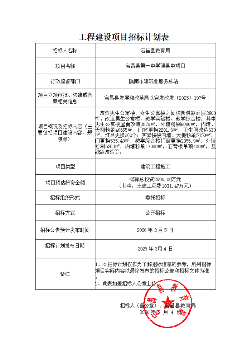 宕昌縣第一中學(xué)強縣中項目