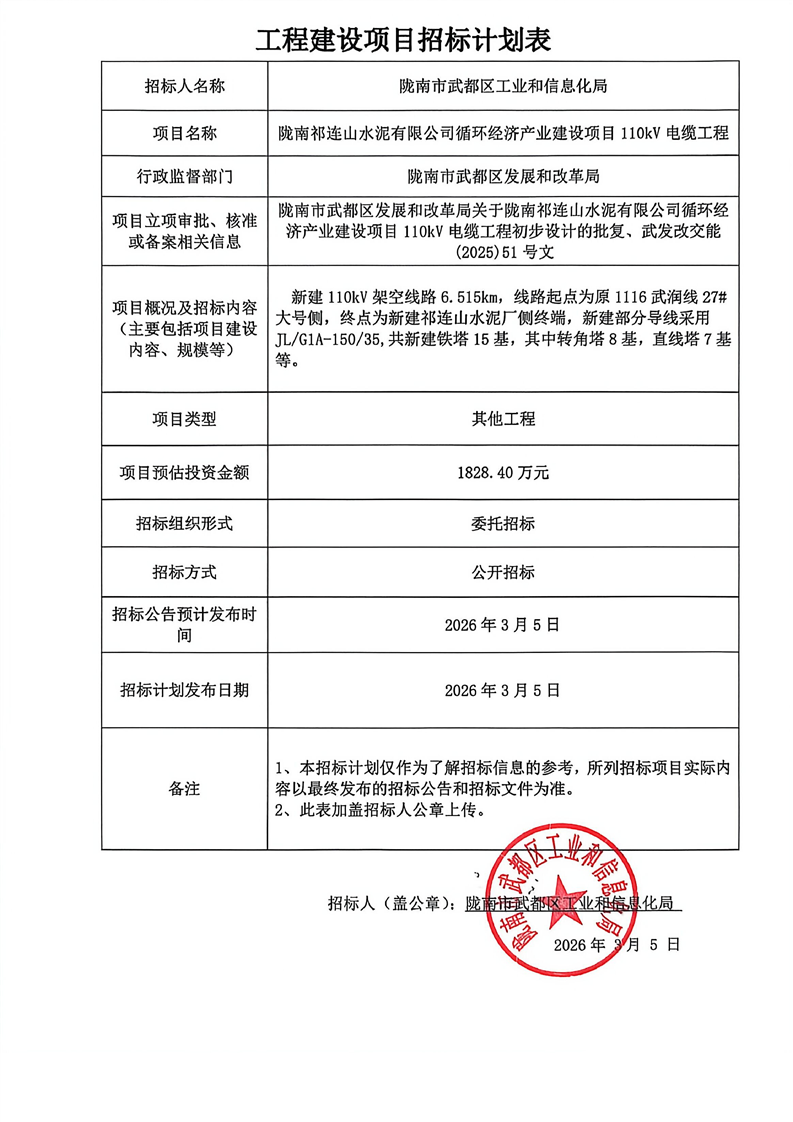 隴南祁連山水泥有限公司循環(huán)經(jīng)濟產(chǎn)業(yè)建設(shè)項目110kV電纜工程