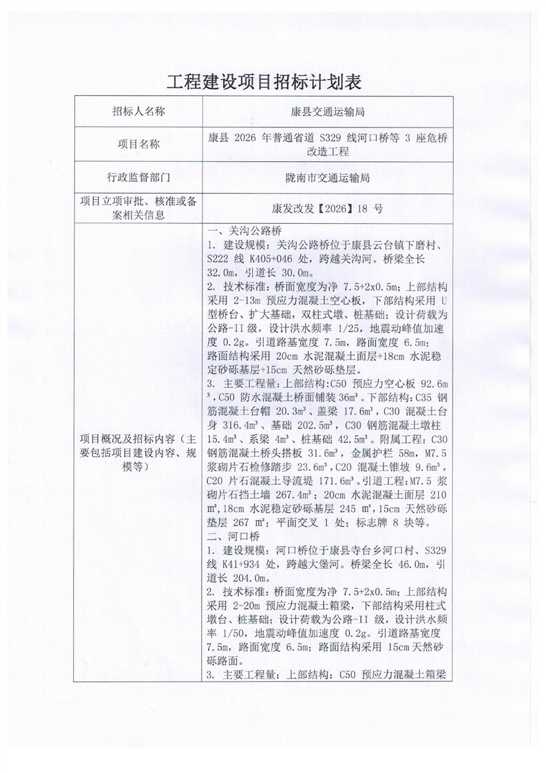 招標(biāo)計劃表--康縣2026年普通省道S329線河口橋等3座危橋改造工程(1).pdf
