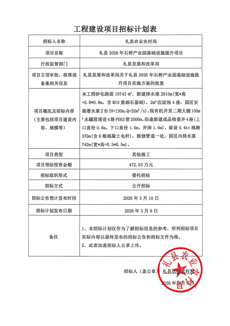 禮縣2026年石橋產業(yè)園基礎設施提升項目
