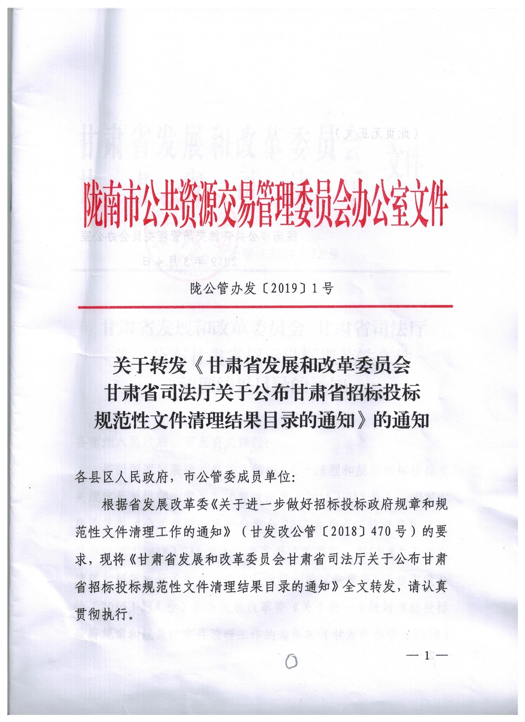 甘肅省發(fā)展和改革委員會(huì) 甘肅省司法廳關(guān)于公布甘肅省招標(biāo)投標(biāo)規(guī)范性文件清理結(jié)果目錄的通知