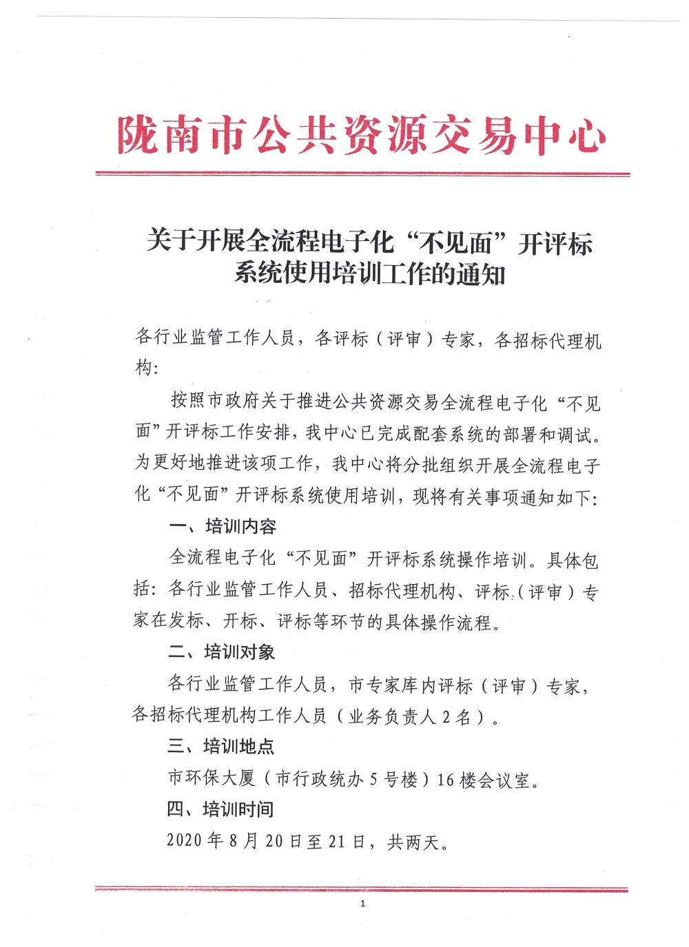 關(guān)于開展全流程電子化“不見面”開評標系統(tǒng)使用培訓工作的通知